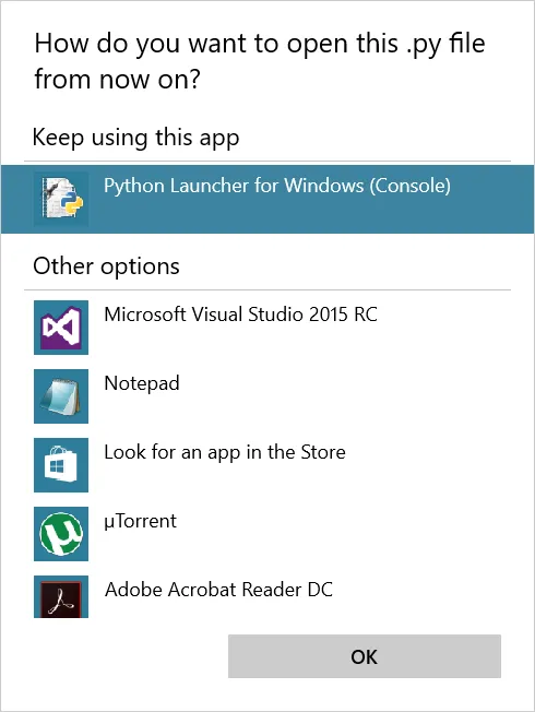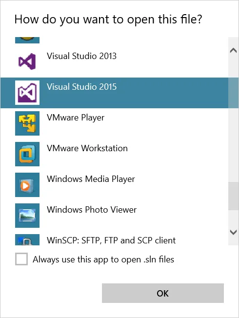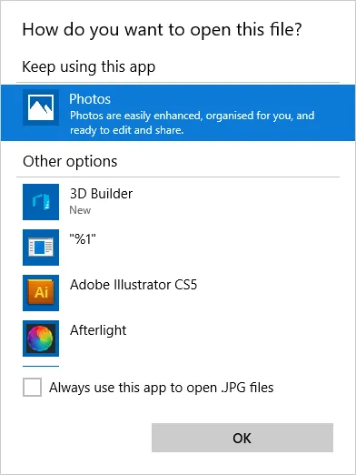Windows 10: 'How do you want to open this file'? dialog box