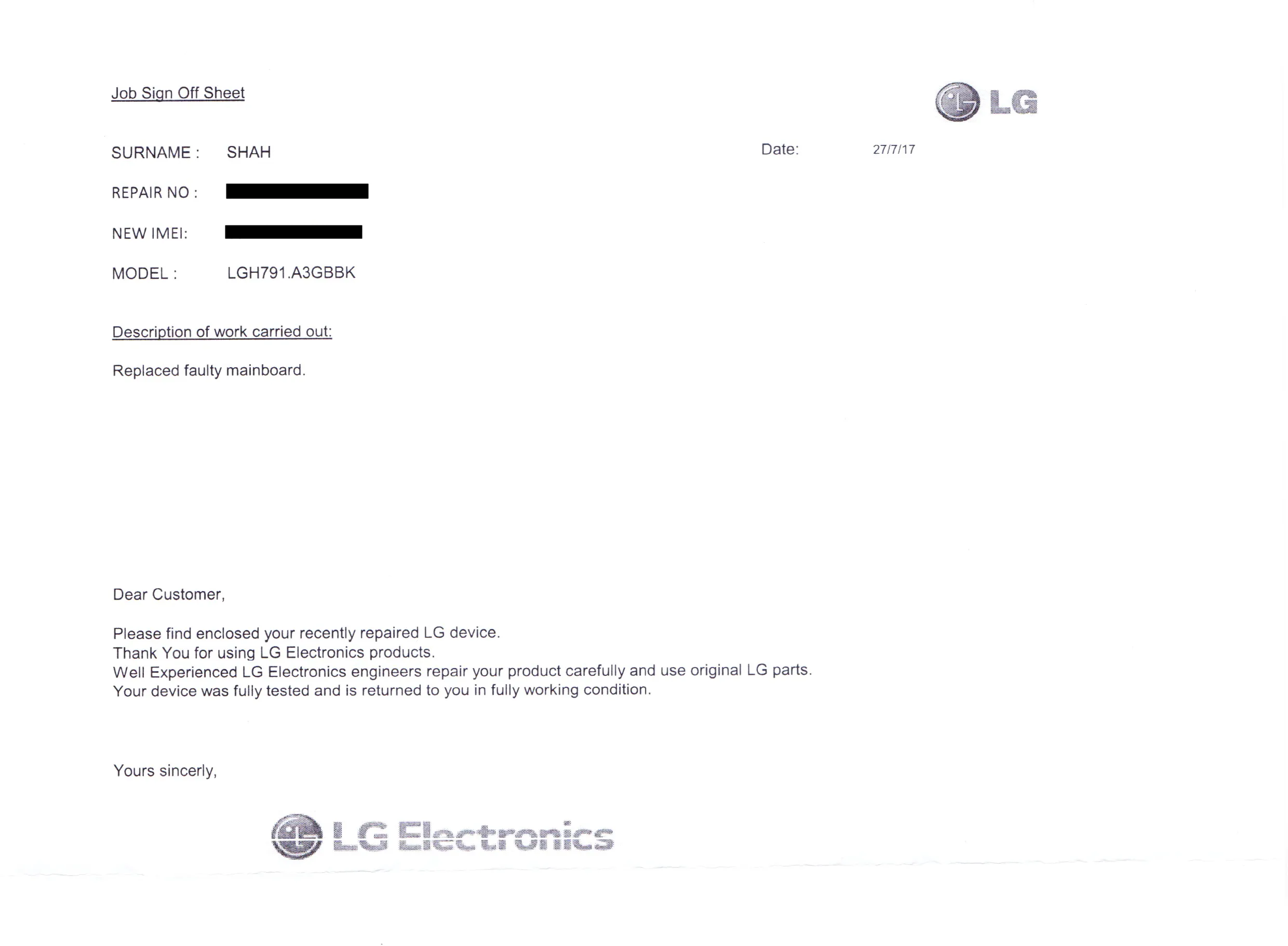 I wanted the least hassle so I parked dealing with Argos and called LG next. They were pretty clued-up, and are sending me instructions to return the item to them for a repair using a locker-based service. However, it means I’ll be without the phone for two weeks which is obviously inconvenient.