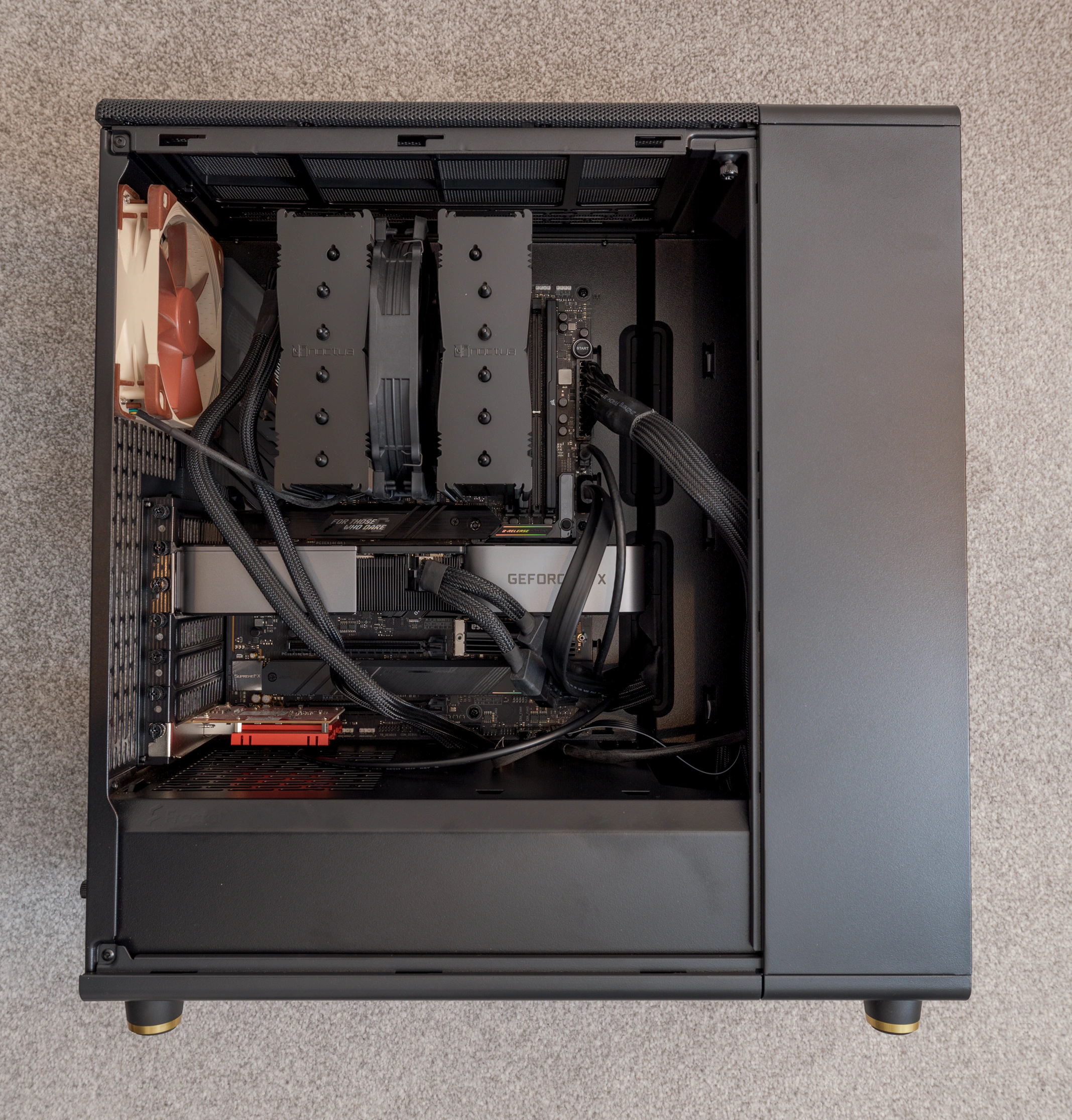 My previous case was a Fractal Design Define R5. It didn’t have a separate PSU compartment (and is a bigger case), so it was a bit different installing things in this case. I also found the Noctua NH-D15S (with its asymmetric design) somewhat got in the way of the CPU power and fan connectors, making connecting those cables a bit fiddly (removing the top cover of the case helps here).