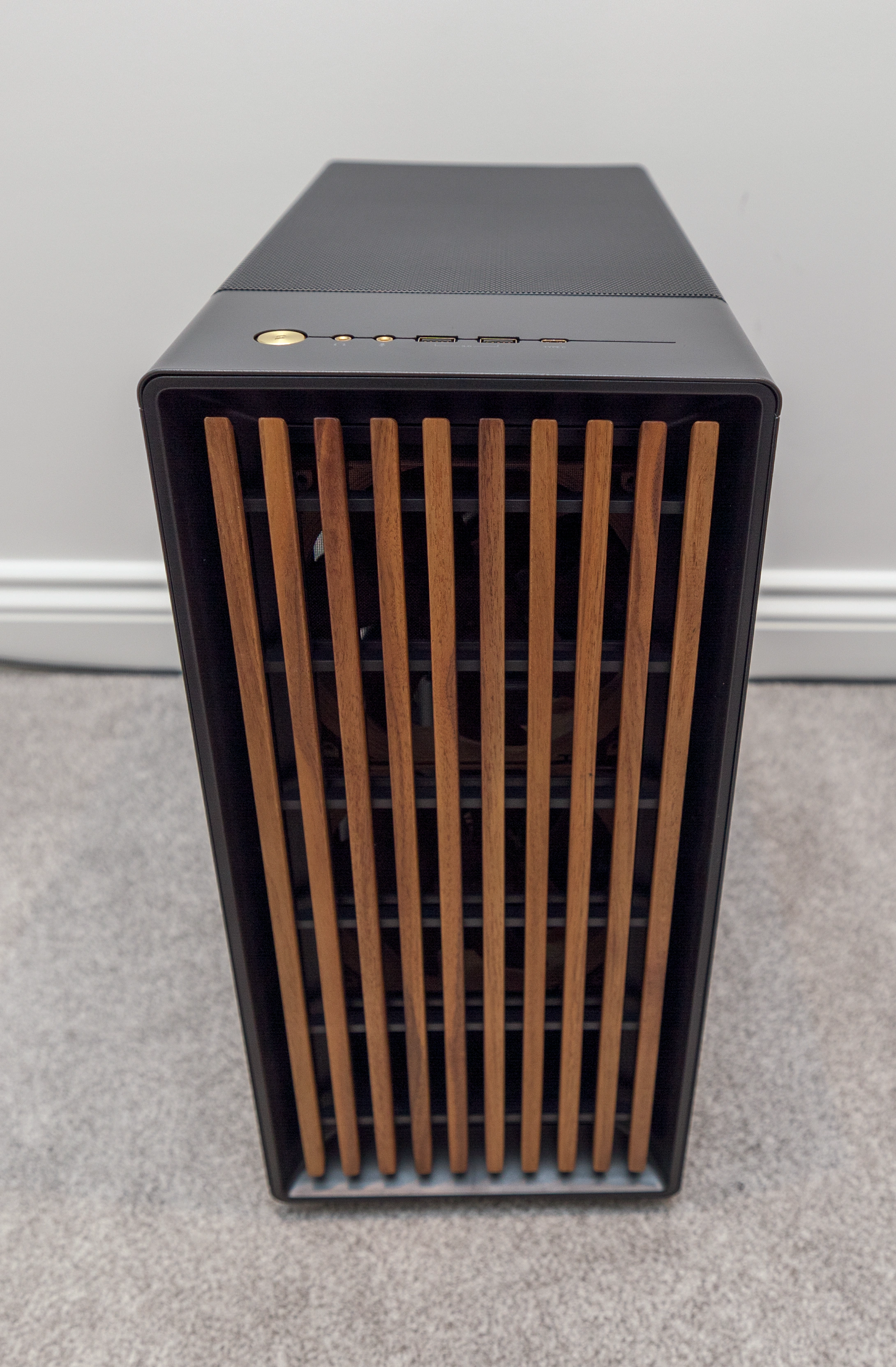 The Fractal Design North is a nice-looking case, and I saw it in stock so I jumped on it. I didn’t fancy having a mesh side (and I didn’t have room to install side fans anyway with the NH-D15S I bought), so I went for the tempered glass version.