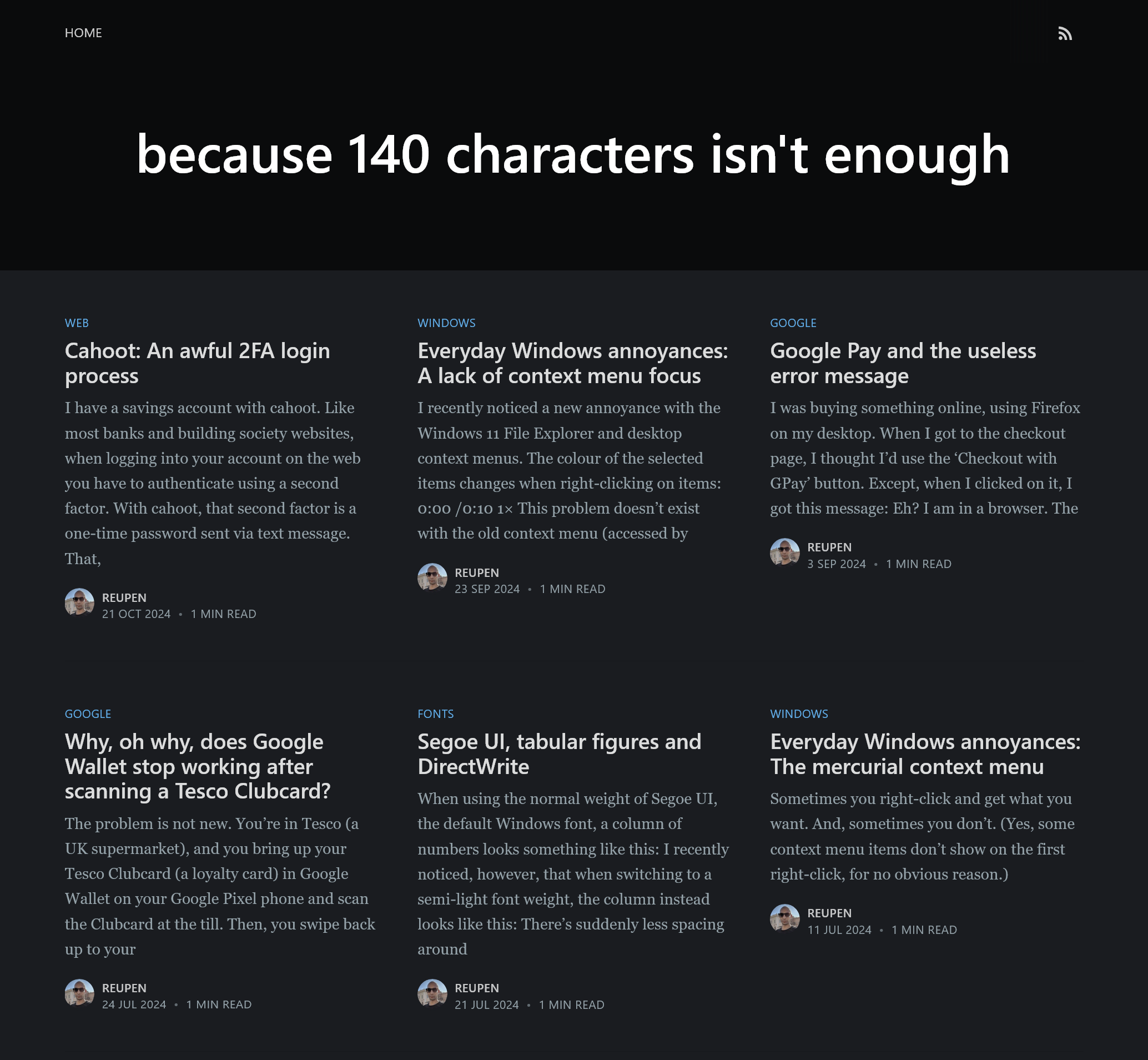 I’ve wanted to move the blog to a static site for some time. And so after the scheduled post snafu, I bit the bullet and put some effort into making that dream happen. And, around a week later, you’re looking at the result.