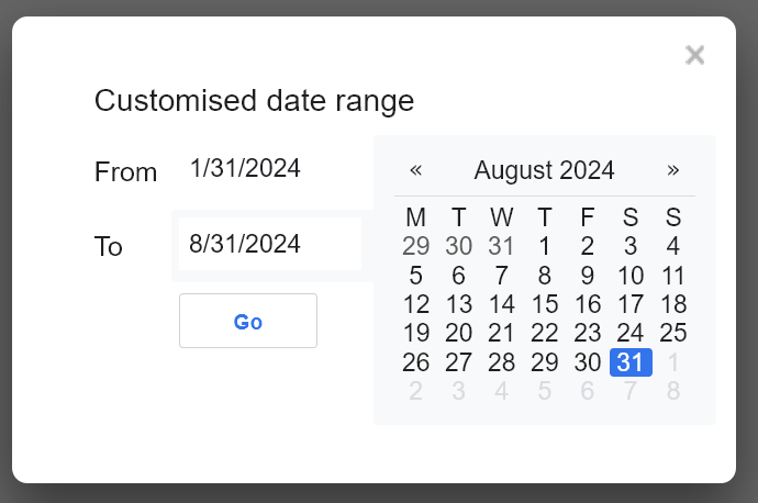 Out of interest, I tried the ‘Custom range…’ time period option: